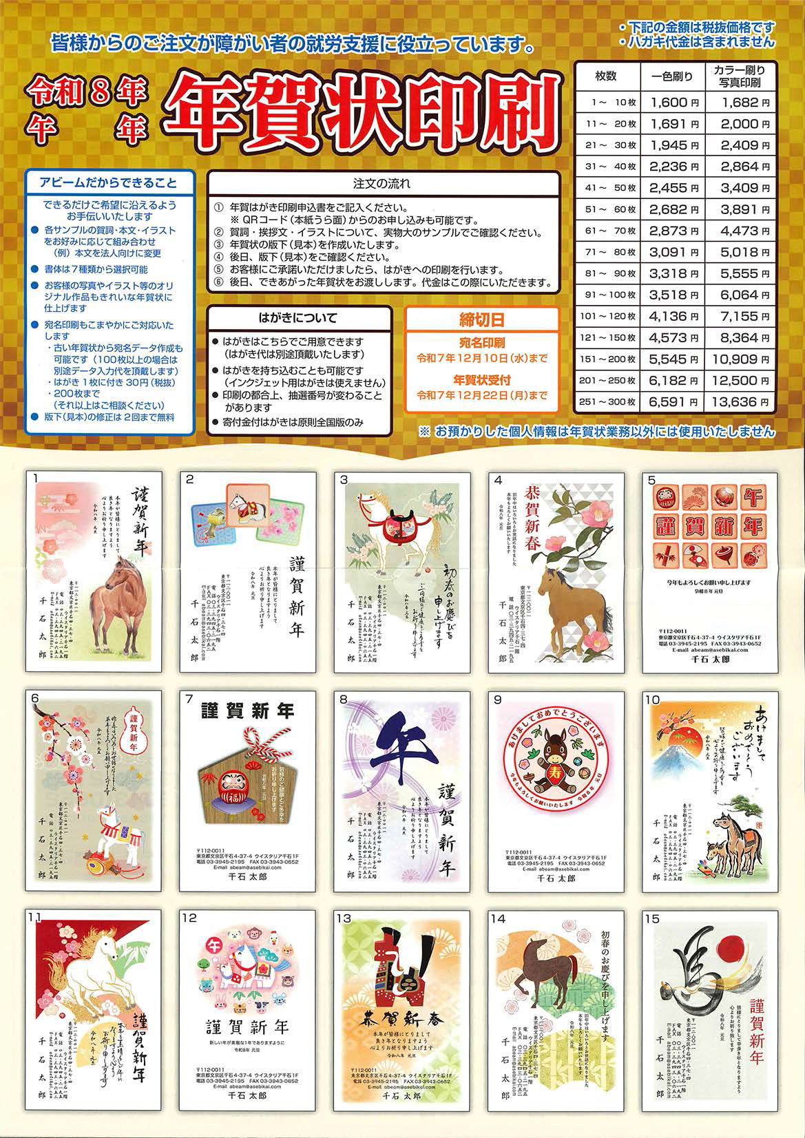 以下、申し込みフォームからも年賀状印刷を受け付けております。