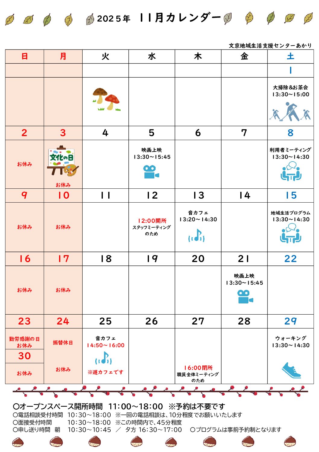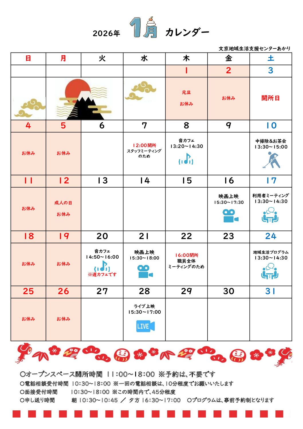 | 音カフェ | お好きな音楽の動画を、スクリーンに映して楽しむ時間です。コーヒーやお茶を飲みながら、参加者のおすすめの音楽を共有します。 |