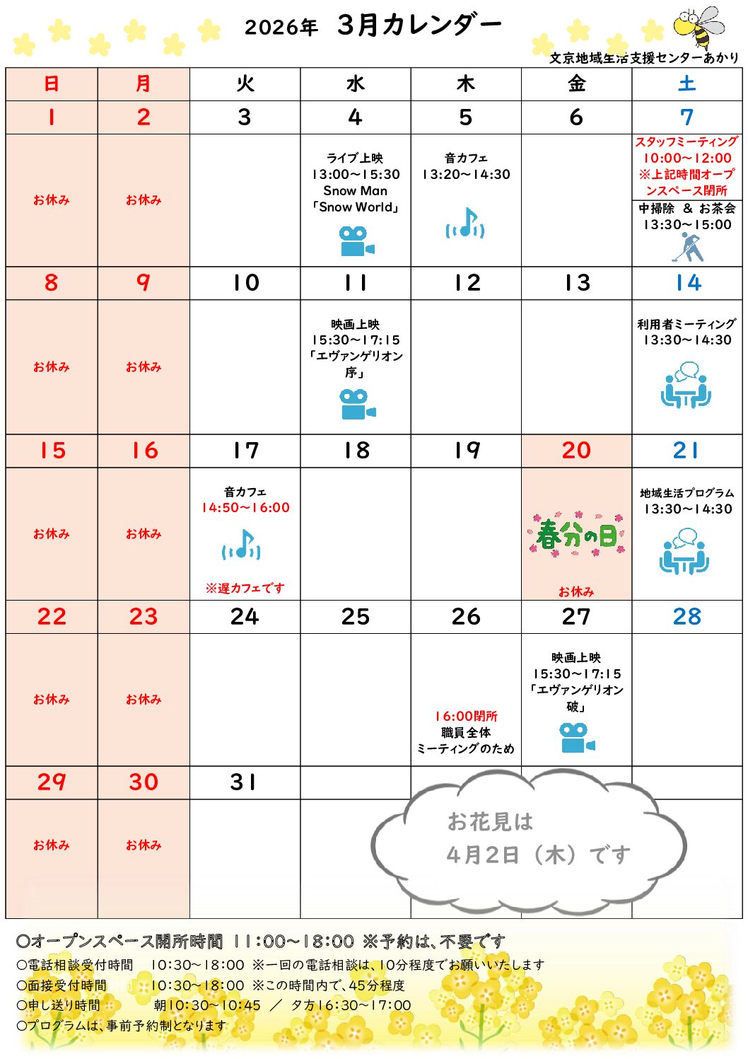 ※オープンスペースの開所時間は、11:00~18:00